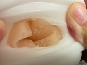 僕はオナホ初心者なので、使い方あってるかは知らないが、先端持つより真ん中ぐらいを持ってしごくとヒダの刺激で超気持ちいいって気分になって気づいたらイってしまってる感じ!